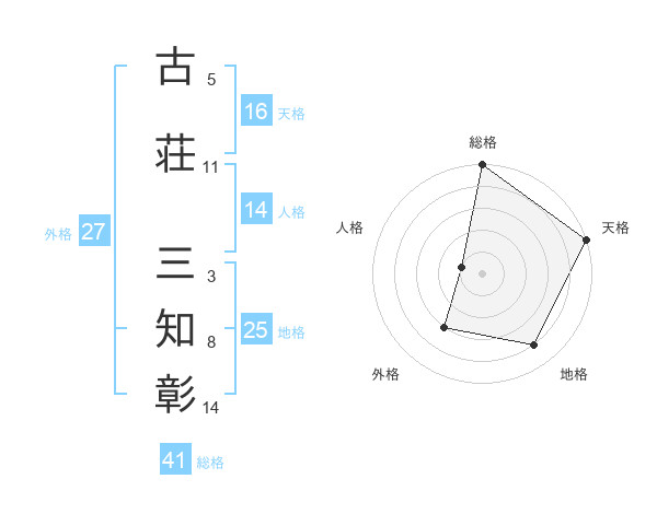 古荘 三知彰さんを姓名の画数から五運を鑑定