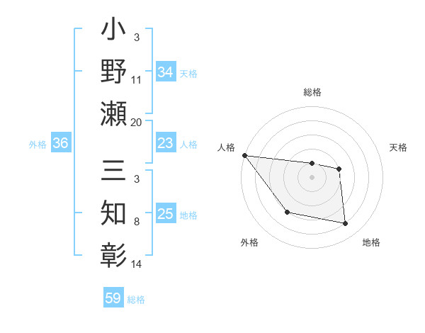小野瀬 三知彰さんを姓名の画数から五運を鑑定