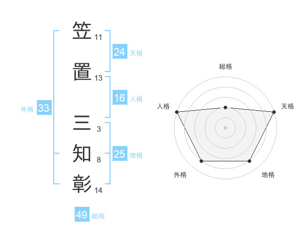 笠置 三知彰さんの天格は24画の5点!
