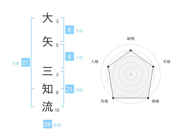 大矢 三知流さんを姓名の画数から五運を鑑定