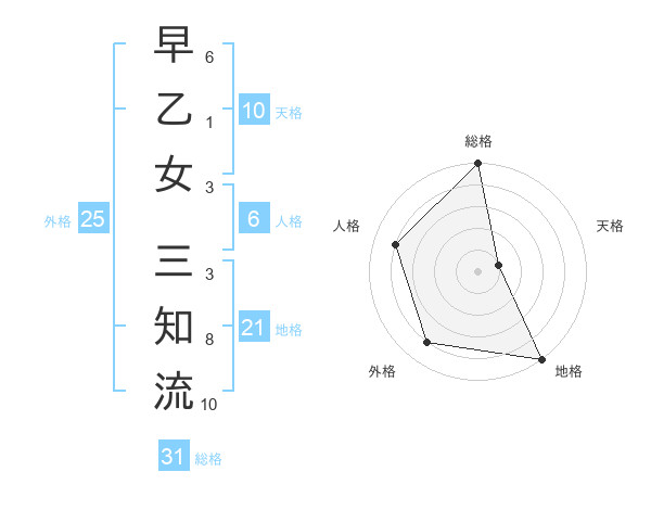 早乙女 三知流さんを姓名の画数から五運を鑑定