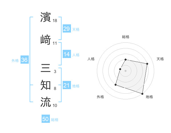 濱﨑 三知流さんを姓名の画数から五運を鑑定