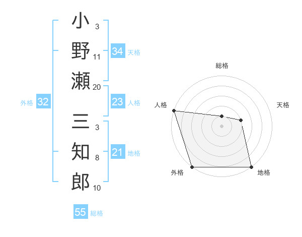 小野瀬 三知郎さんを姓名の画数から五運を鑑定