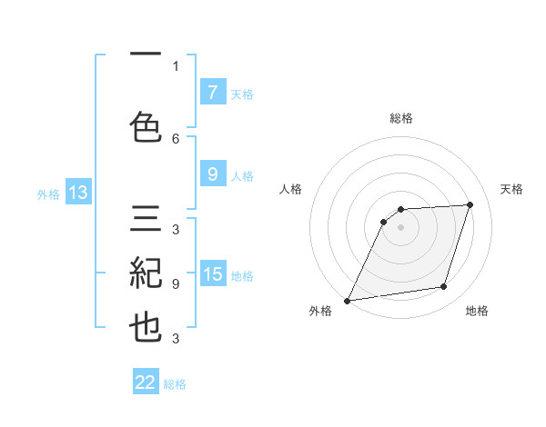 一色 三紀也さんを姓名の画数から五運を鑑定