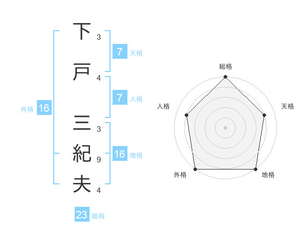 下戸 三紀夫さんを姓名の画数から五運を鑑定
