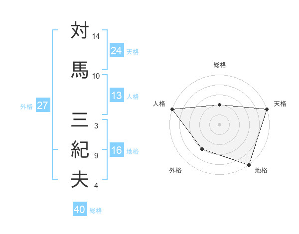 対馬 三紀夫さんの外格は27画の3点!