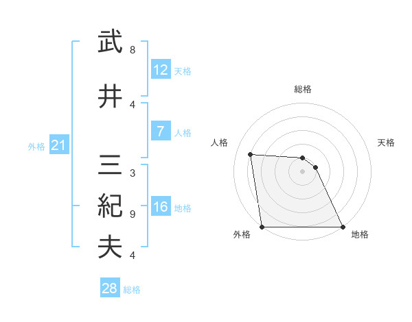 武井 三紀夫さんを姓名の画数から五運を鑑定