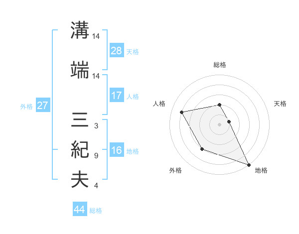 溝端 三紀夫さんを姓名の画数から五運を鑑定