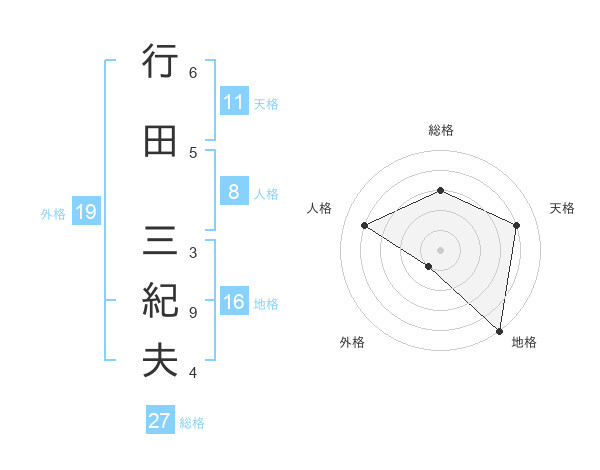 行田 三紀夫さんを姓名の画数から五運を鑑定
