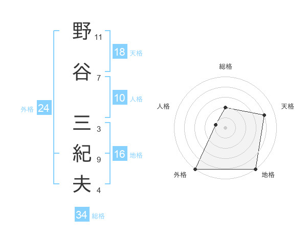 野谷 三紀夫さんを姓名の画数から五運を鑑定