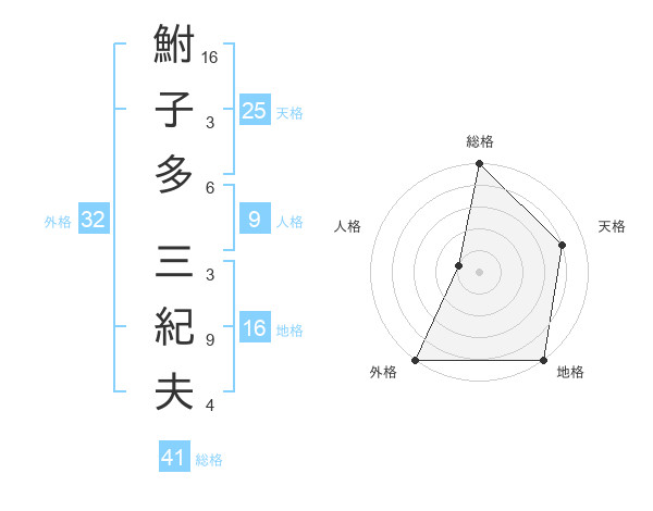 鮒子多 三紀夫さんを姓名の画数から五運を鑑定