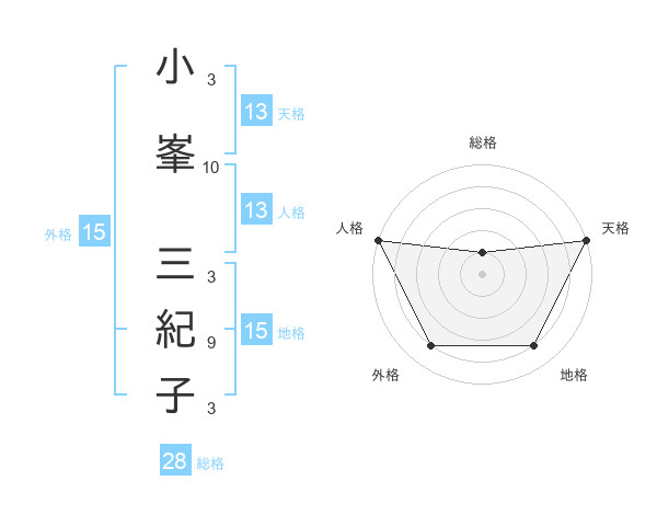 小峯 三紀子さんを姓名の画数から五運を鑑定