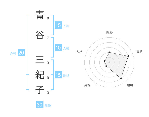 青谷 三紀子さんを姓名の画数から五運を鑑定