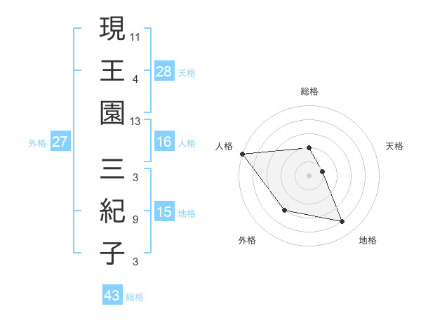 現王園 三紀子さんを姓名の画数から五運を鑑定