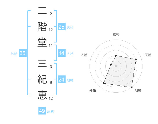二階堂 三紀恵さんを姓名の画数から五運を鑑定