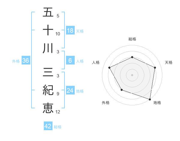 五十川 三紀恵さんを姓名の画数から五運を鑑定