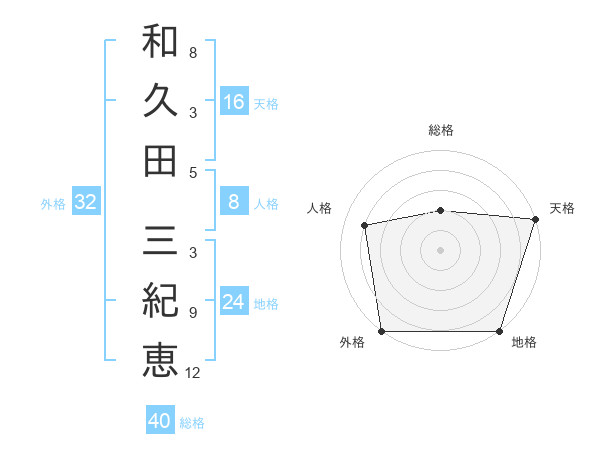 和久田 三紀恵さんを姓名の画数から五運を鑑定