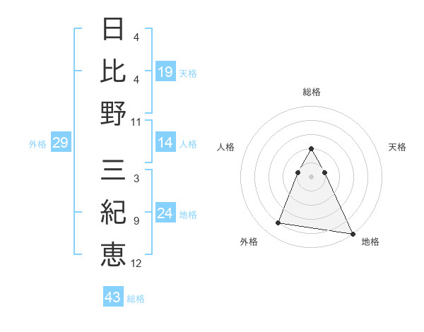 日比野 三紀恵さんを姓名の画数から五運を鑑定