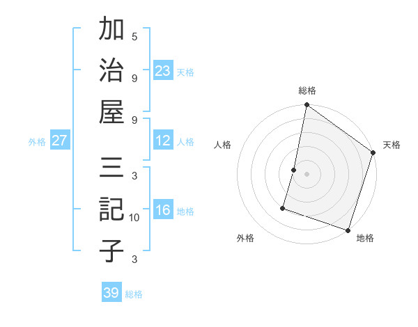 加治屋 三記子さんを姓名の画数から五運を鑑定