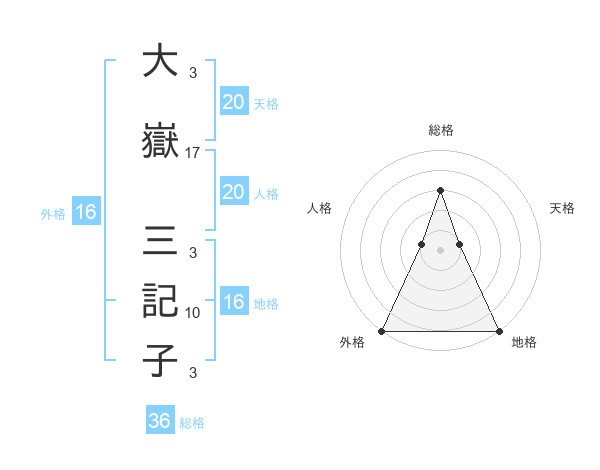 大嶽 三記子さんの外格は16画の5点!