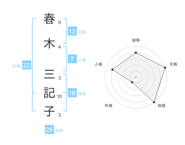 春木 三記子さんの総格は29画の4点!