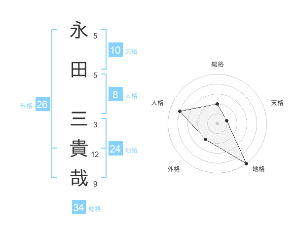 永田 三貴哉さんの地格は24画の5点!