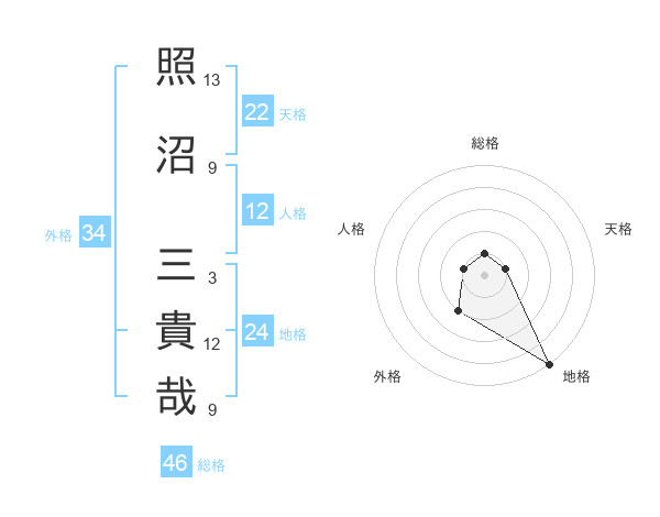 照沼 三貴哉さんの天格は22画の1点!