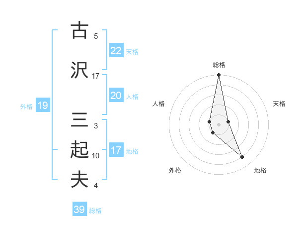 古沢 三起夫さんを姓名の画数から五運を鑑定