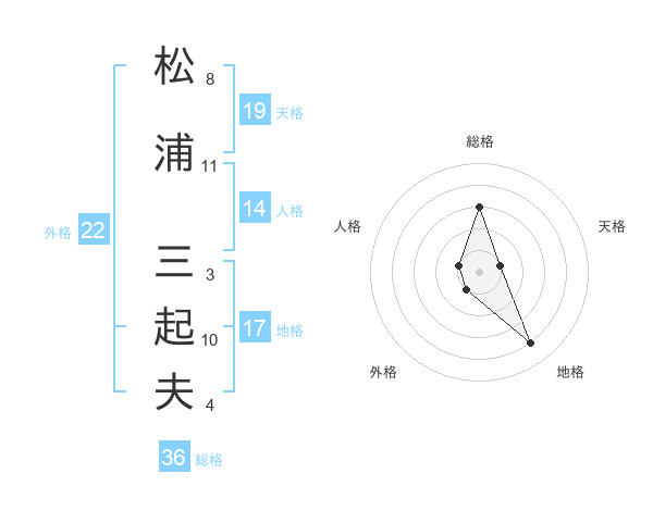 松浦 三起夫さんの総格は36画の3点