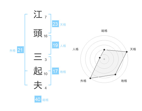 江頭 三起夫さんを姓名の画数から五運を鑑定