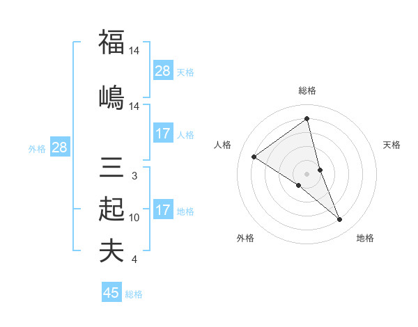 福嶋 三起夫さんを姓名の画数から五運を鑑定