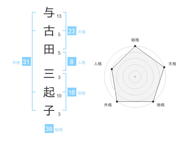 与古田 三起子さんを姓名の画数から五運を鑑定