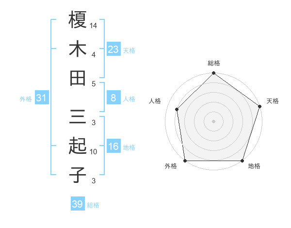 榎木田 三起子さんの天格は23画の5点!