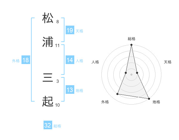 松浦 三起さんの総格は32画の5点!