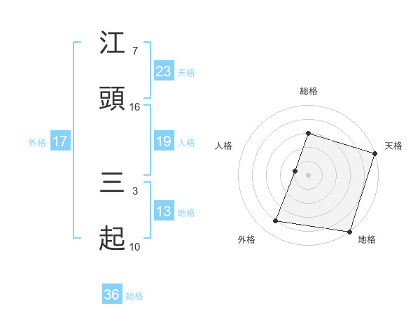 江頭 三起さんの天格は23画の5点!