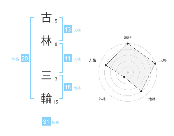 古林 三輪さんの総格は31画の5点!