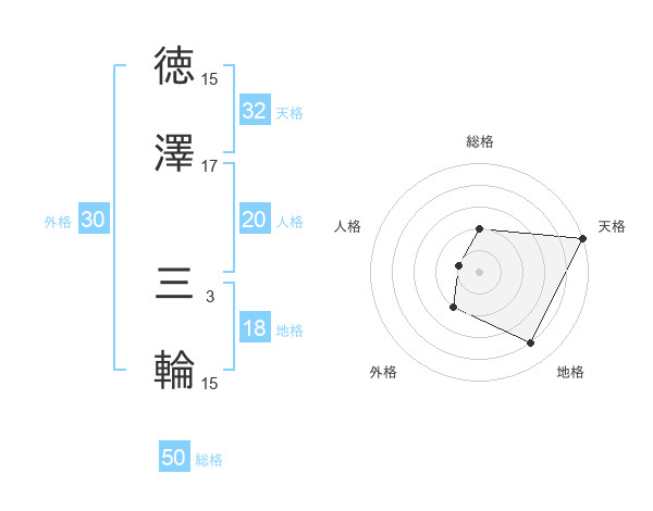 徳澤 三輪さんを姓名の画数から五運を鑑定