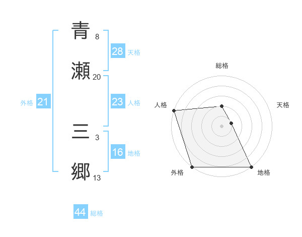 青瀬 三郷さんを姓名の画数から五運を鑑定