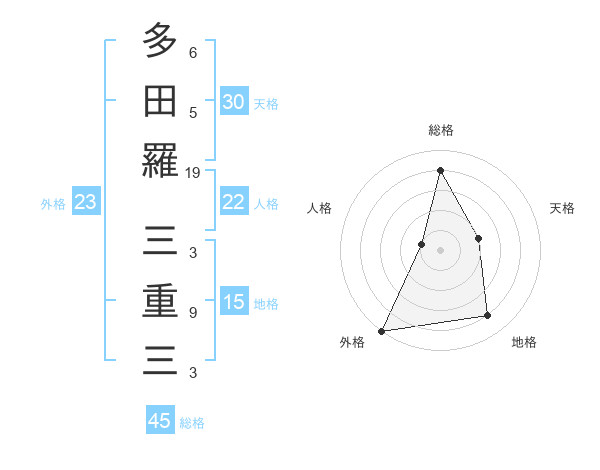 多田羅 三重三さんを姓名の画数から五運を鑑定