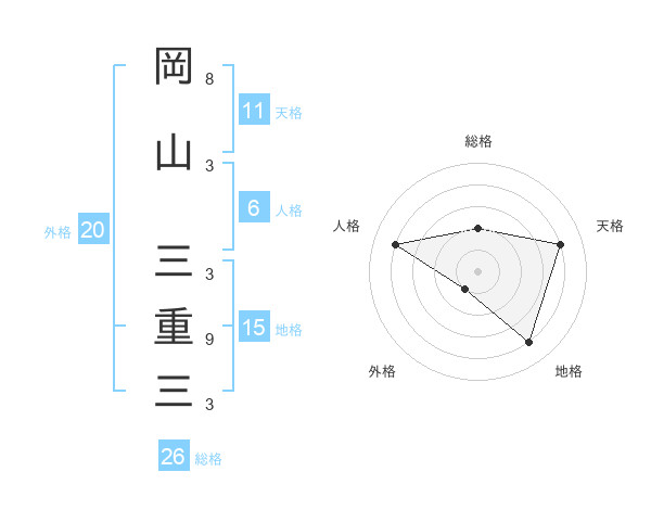 岡山 三重三さんを姓名の画数から五運を鑑定