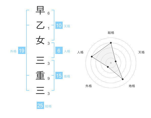 早乙女 三重三さんを姓名の画数から五運を鑑定