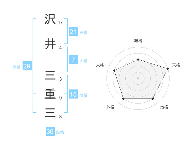 沢井 三重三さんを姓名の画数から五運を鑑定