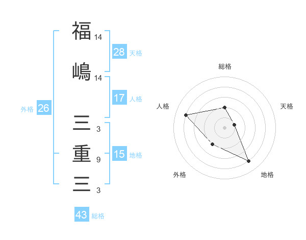福嶋 三重三さんの外格は26画の2点!