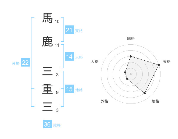 馬鹿 三重三さんの天格は21画の5点!