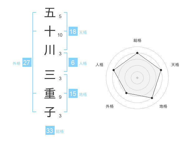 五十川 三重子さんを姓名の画数から五運を鑑定