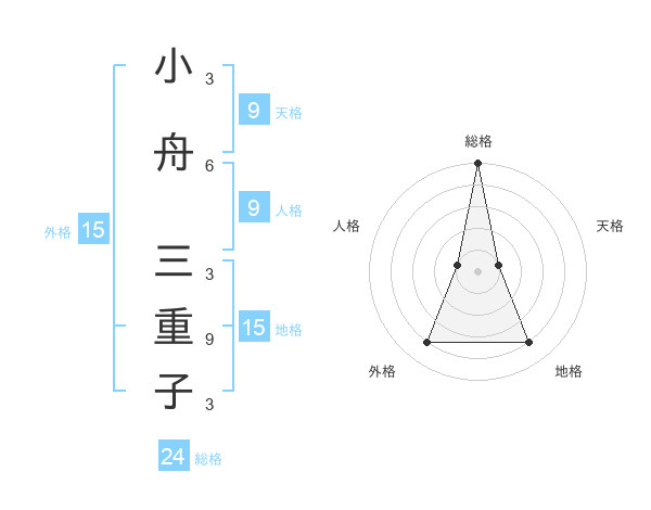小舟 三重子さんを姓名の画数から五運を鑑定