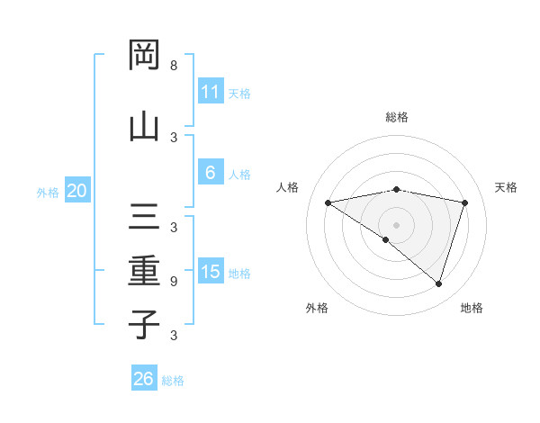 岡山 三重子さんの総格は26画の2点!