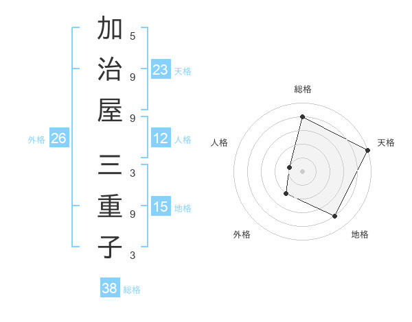 加治屋 三重子さんの総格は38画の4点