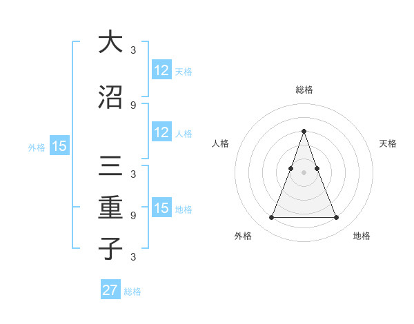 大沼 三重子さんの総格は27画の3点