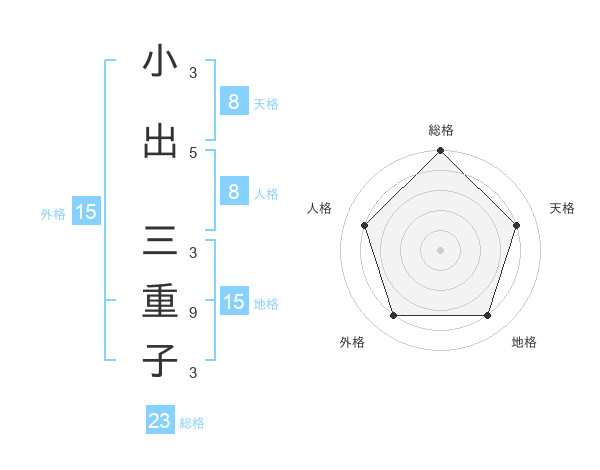 小出 三重子さんの外格は15画の4点!